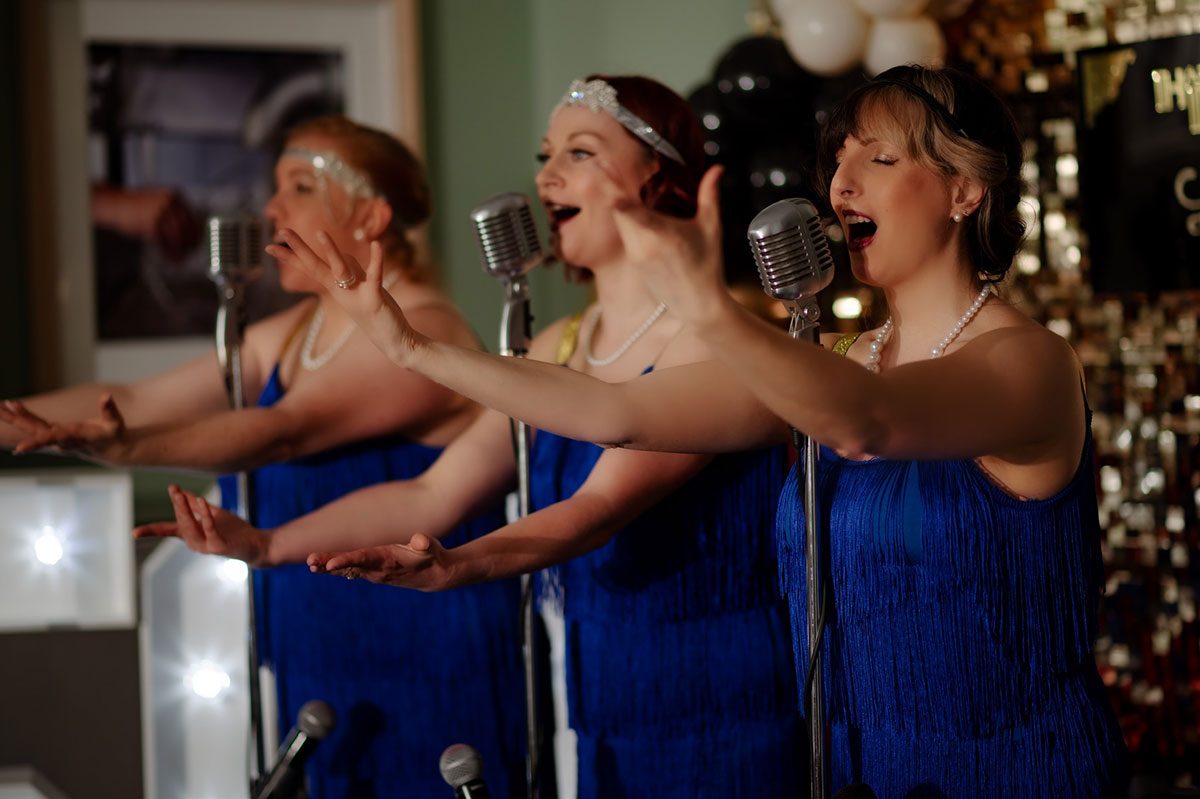 This vintage vocal trio effortlessly capture the Hollywood Glam and Flapper style with their professional musicianship and roaring twenties charm. The group is suitable for a range of events, whether a corporate event, wedding reception, private party, or Gatsby-themed event.