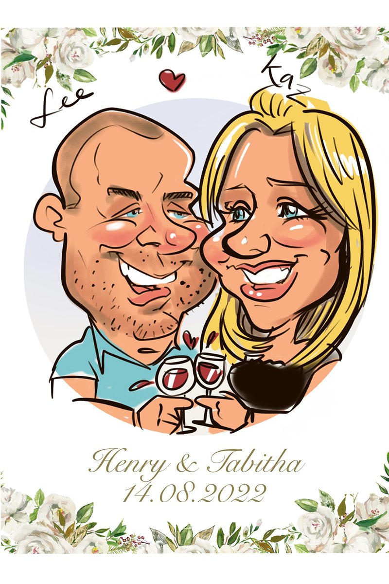 Playful Portraits offers lighthearted live sketches and digital caricatures that cater to all age groups. His digital artworks are perfect as cheeky event ID card alternatives or placeholders during the wedding breakfast.