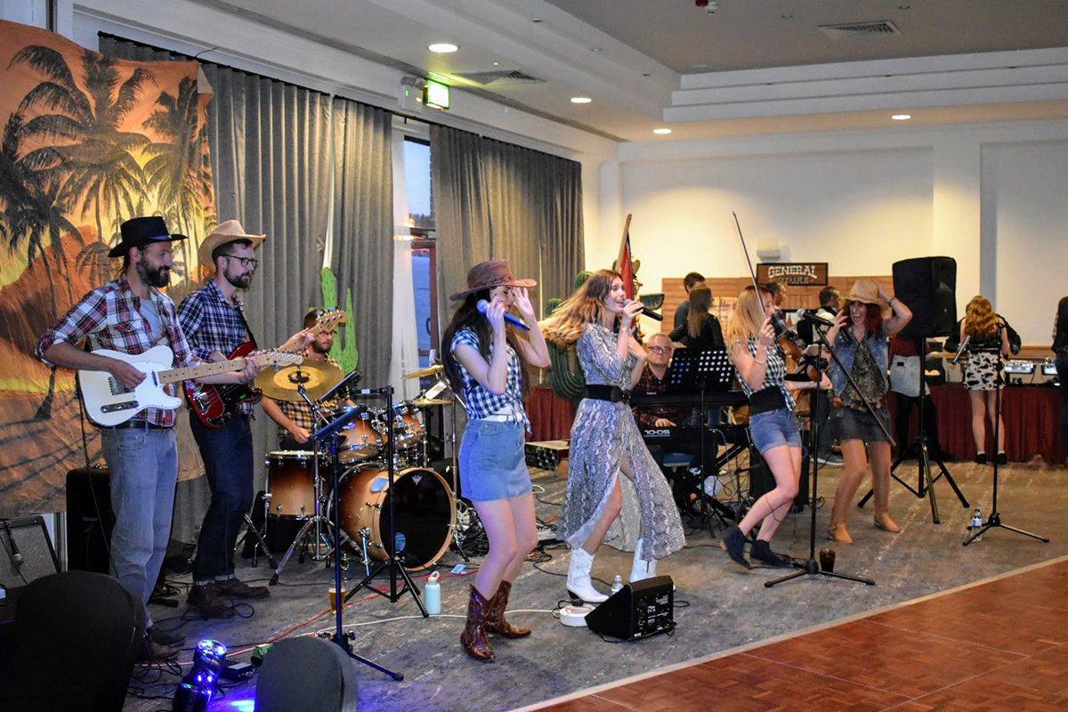 The band's live show is full of energy, interactive fun, and excellent musicianship, complete with line and hoedown dance instructions to immerse guests in an authentic Country & Western experience.