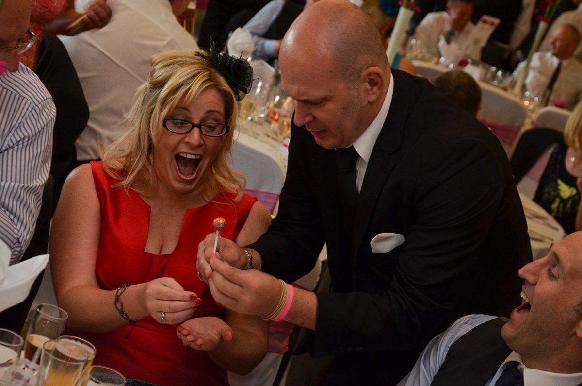 With his Dynamo-style close-up magic, the Amazer offers walkaround or table-to-table magic, engaging guests with his light-hearted sense of humour.